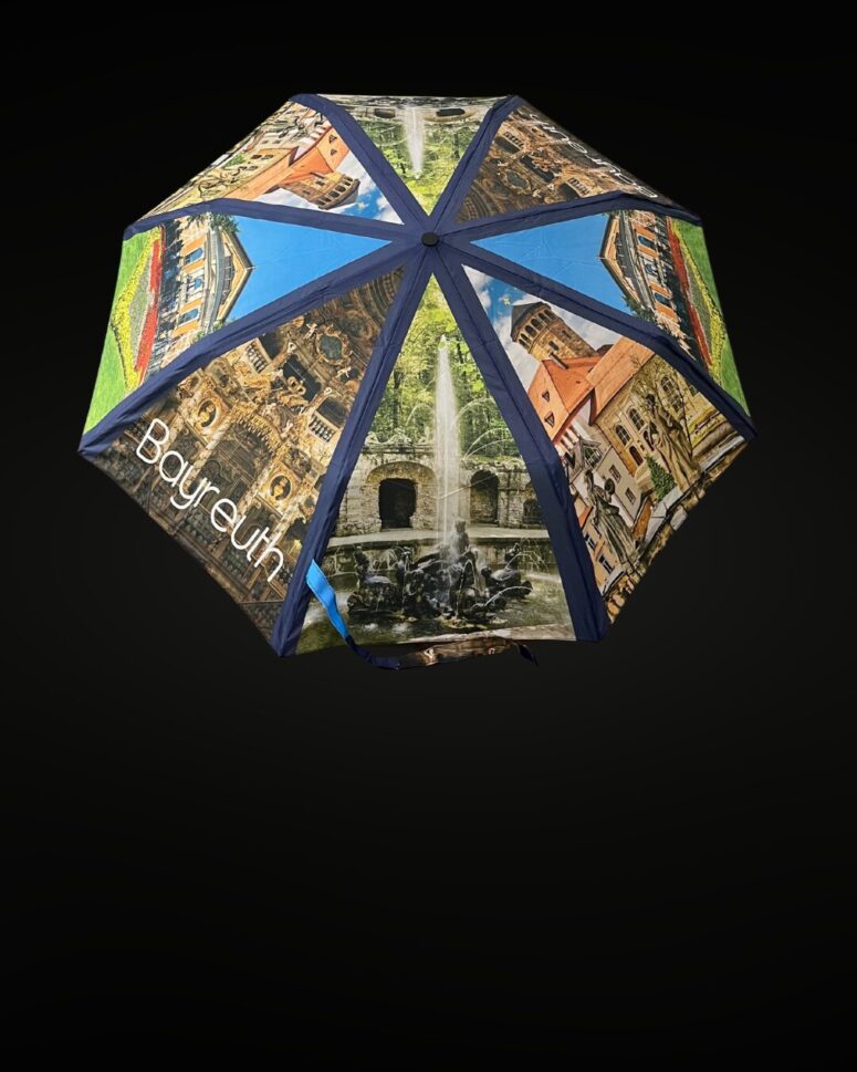 In unserem Bayreuth Souvenir Shop und Geschenkeladen erwarten Sie zum Beispiel T‑Shirts und Hoodies, Liköre und Obstbrände aus der Region, Schals, Taschen, Tassen, Weine, Magneten, Spieluhren, der beliebte Bayreuth-Regenschirm als Stock- und Taschenschirm und vieles mehr.