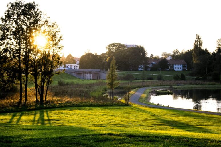 Die Wilhelminenaue bietet viel Raum zum Durchatmen: Weite Wiesen, sanfte Hügel und bunt gefärbte Bäume schaffen eine entspannte Herbststimmung. Der Rundweg beginnt am Parkeingang und führt über verschlungene Wege durch die Aue – vorbei an Baumreihen, die in leuchtendem Gold und Rot erstrahlen. Unterwegs laden Bänke immer wieder zum Verweilen ein, um den Blick über die weiten Wiesen und die stille Landschaft schweifen zu lasse