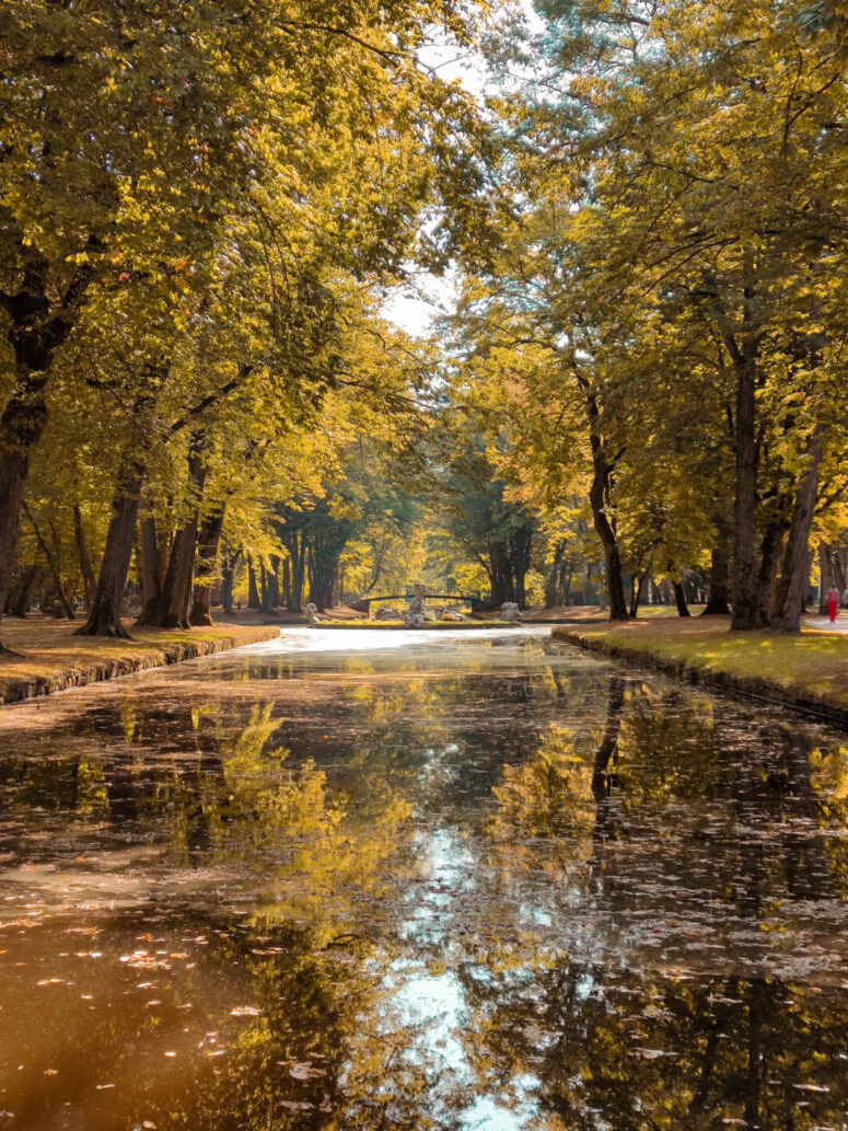 Im Herzen Bayreuths liegt der Hofgarten – ein Klassiker zu jeder Jahreszeit, aber im Herbst besonders stimmungsvoll. Der Rundgang beginnt am Haupteingang, von dort führen breite Wege zwischen alten Baumalleen, kleinen Kanälen und weiten Rasenflächen einmal quer durch den Park. Am Ende des Weges erhebt sich das Neue Schloss, dessen barocke Fassade den Spaziergang eindrucksvoll abrundet.
