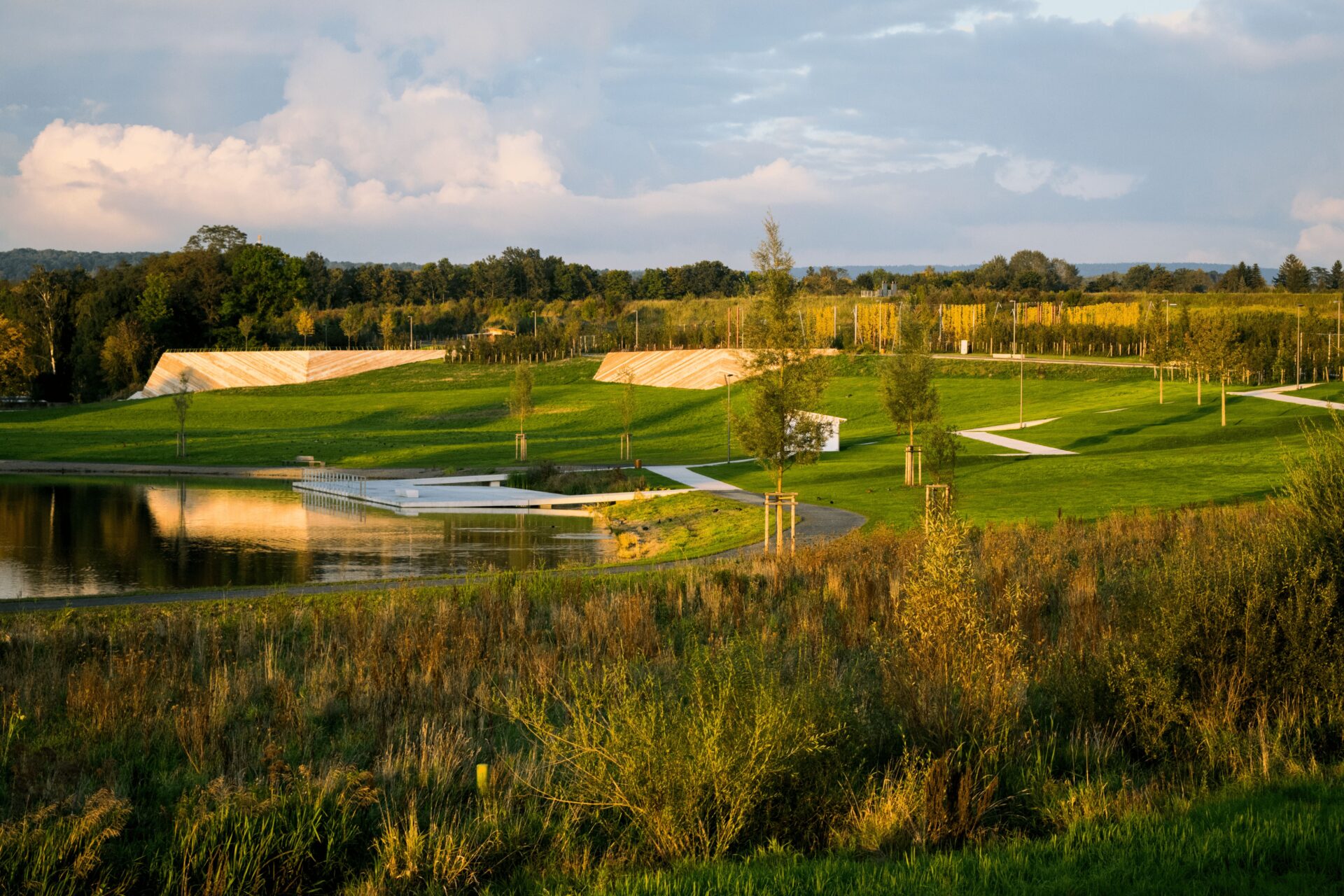 Die Wilhelminenaue bietet viel Raum zum Durchatmen: Weite Wiesen, sanfte Hügel und bunt gefärbte Bäume schaffen eine entspannte Herbststimmung. Der Rundweg beginnt am Parkeingang und führt über verschlungene Wege durch die Aue – vorbei an Baumreihen, die in leuchtendem Gold und Rot erstrahlen. Unterwegs laden Bänke immer wieder zum Verweilen ein, um den Blick über die weiten Wiesen und die stille Landschaft schweifen zu lasse