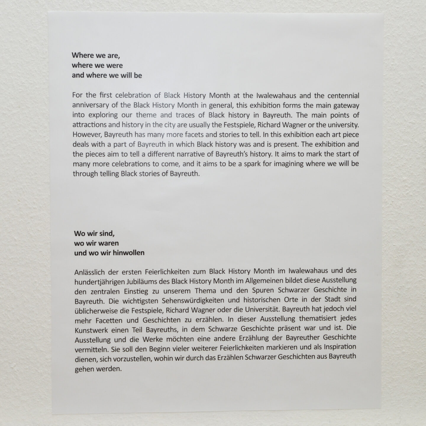 Zum 100-jährigen Jubiläum des Black History Month findet vom 03.02 bis zum 28.02.2026 im Iwalewahaus der Universität Bayreuth eine „wegweisende Ausstellung und Kunstveranstaltung“ statt, die „an ein Jahrhundert des Geschichtenerzählens, der Widerstandfähigkeit und der künstlerischen Brillanz innerhalb der Schwarzen Gemeinschaft in Bayreuth erinnert“.