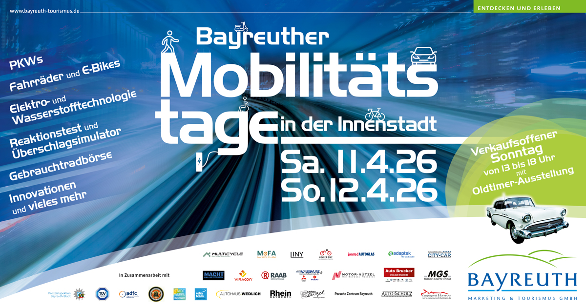 Am 11. und 12. April wird die Bayreuther Innenstadt wieder zum Treffpunkt für Mobilität in all ihren Facetten.